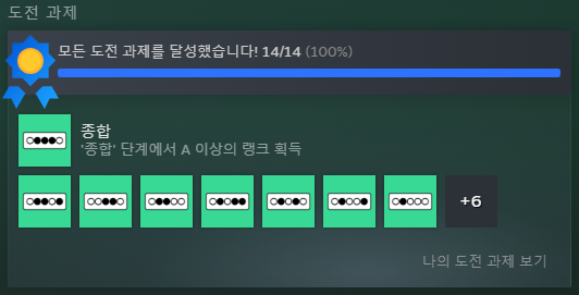 모든 맵에서 A단계 이상의 랭크를 획득하면 모든 도전과제를 얻을 수 있다.